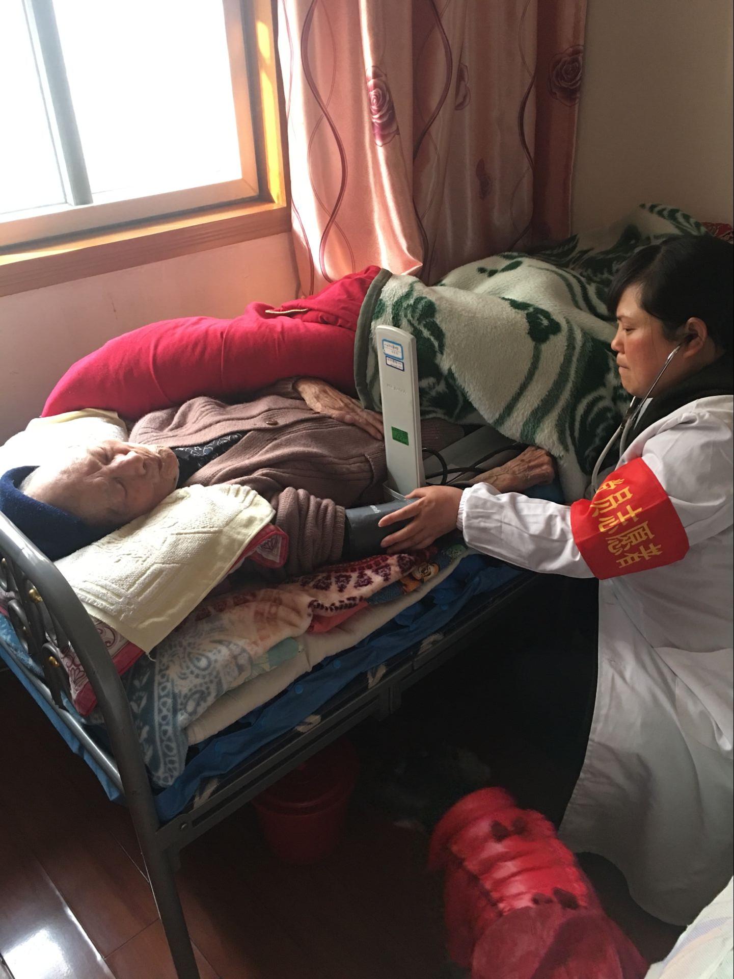 在张珊云与蒋玲玲老人家中,医务人员为老人量了血压,进行了查体检查,并抽血检查了肝、肾功能,血糖、血脂等多个项目,还给老人耐心解答问题,指导合理用药。“真是太感谢了”,张珊云老人的儿子说,他母亲因长期患有内风湿,手足多个关节出现畸形,并有骨和骨骼肌萎缩,行动非常不便,父亲瘫痪在床,要把他们带出家门去体检还真是很困难,他抱着试一试的心态问了一下通知体检的社区医生是或可以上门体检,没想到这么快就派人来了,感受到社区卫生服务真的非常方便。