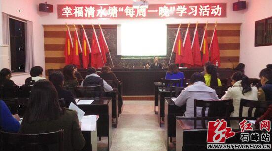 石峰新闻网讯 (通讯员 徐麟) 2月28日晚,清水塘街道办事处“每周一晚”活动室内,公务礼仪授课老师张爱与办事处参加学习的机关干部正在进行课堂互动。