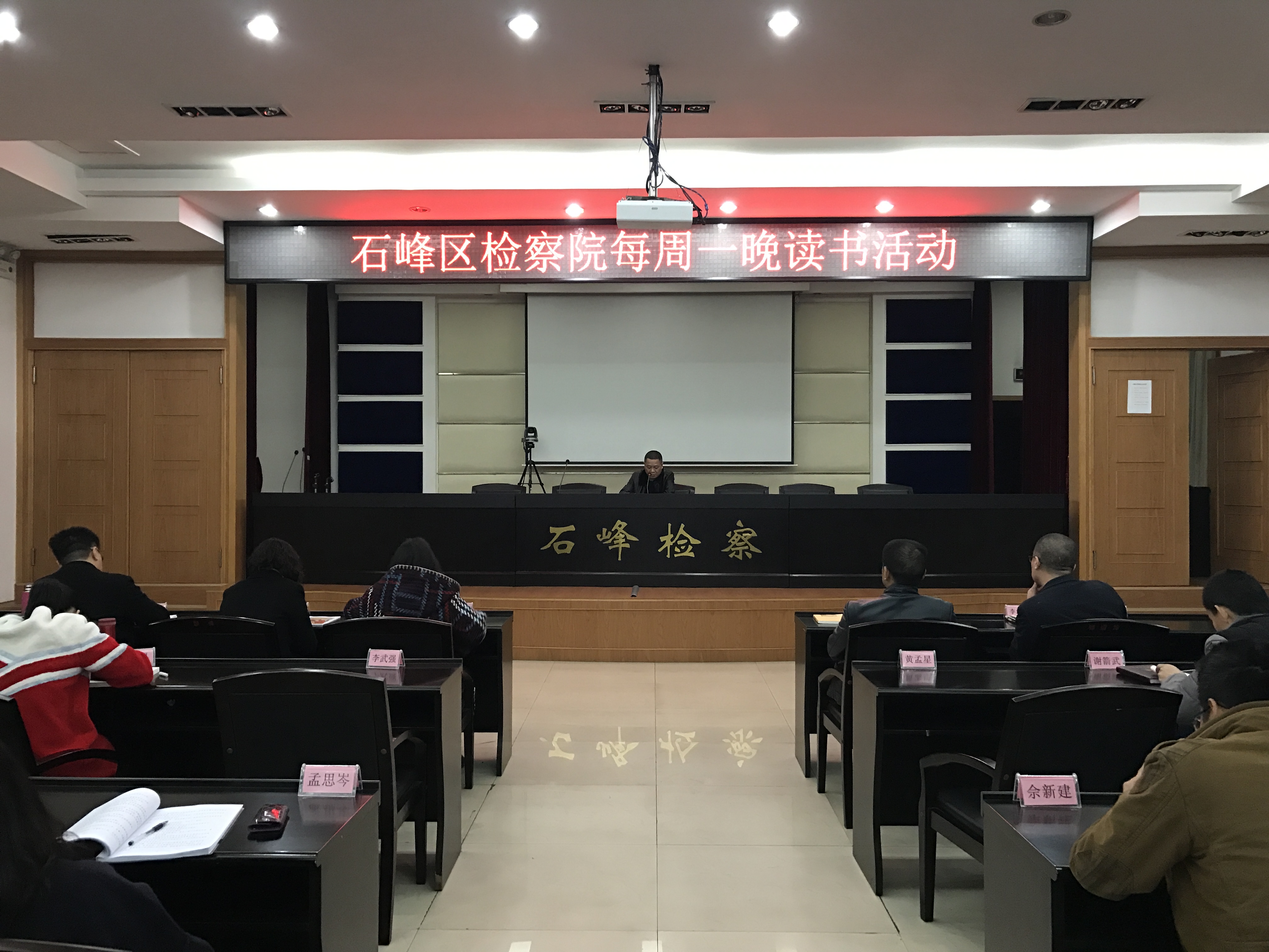 石峰新闻网讯 3月7日晚,根据区委的安排,石峰区检察院院党组成员和45岁以下年轻干警开展集中读书学习活动。以读书提升干部素质,打造学习型检察队伍;以读书搭建交流平台,以书会友、以文沁心;以读书营造机关文化,把石峰检察建设成为干警的“心灵家园”和“精神家园”。