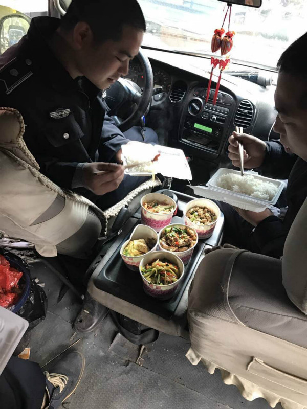 石峰新闻网讯 (通讯员 梁丰) 3月8日中午12点半,大多数人已吃过午饭,准备美美的睡个午觉了,而此时在建设北路边上,石峰区城管队员在执法车里刚拿起已经凉了的盒饭,准备简单对付一下。