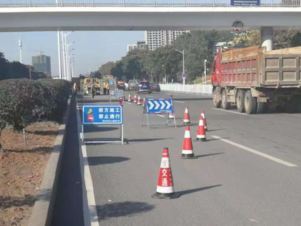 道路中修期间,通过设置施工提示牌、警示牌等,努力降低施工带来的交通影响 通讯员 供图