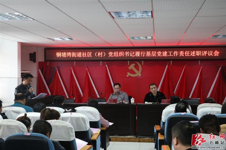 石峰新闻网讯 (通讯员 张叶佳) 1月26日上午,铜塘湾街道召开社区(村)党组织书记履行基层党建工作责任述职评议会。机关各部门负责人、街道党政班子成员、社区(村)“两委”成员共66人参加会议。