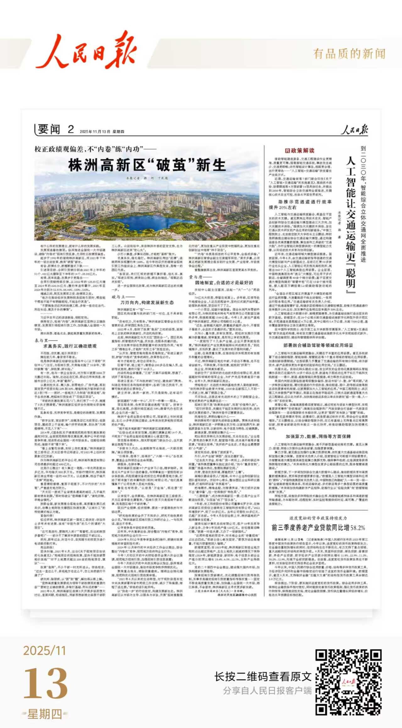 今天,《人民日报》刊发文章《校正政绩观偏差,不“内卷”练“内功”——株洲高新区“破茧”新生》报道了株洲高新区招商引资工作,原文如下:
